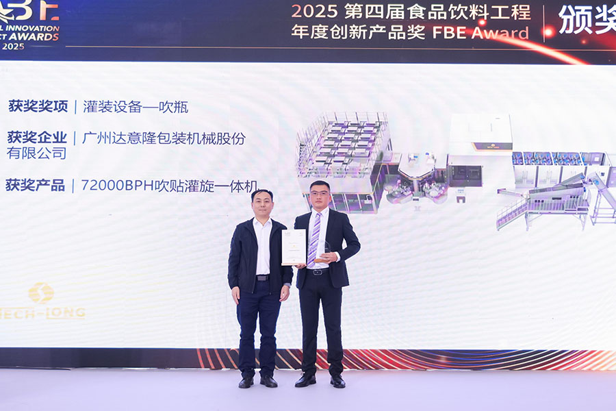 2025年10月28日,達(dá)意隆憑借其推出的72000BPH吹貼灌旋一體機,在眾多參賽成果中脫穎而出,榮膺“第四屆食品飲料工程年度創(chuàng)新產(chǎn)品獎(FBE Award 2025)”。該獎項不僅是對達(dá)意隆在液態(tài)包裝領(lǐng)域持續(xù)創(chuàng)新與技術(shù)深耕的高度認(rèn)可,更充分體現(xiàn)了其在幫助客戶降本增效、推動行業(yè)可持續(xù)發(fā)展方面所展現(xiàn)的技術(shù)實力與卓越價值。